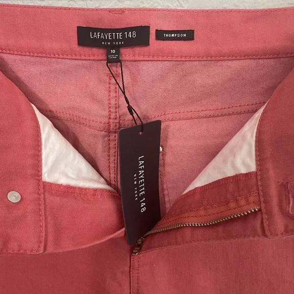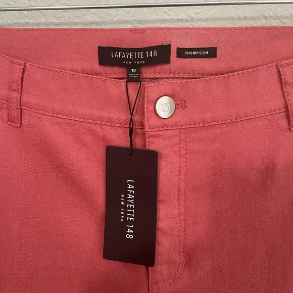 Neiman Marcus exclusive style. Crafted fromlightweight Italian denim, this Thompson Jean is tailored with a slim fit, full length and classic pockets.DETAILSSlim fitFront zipJean-style pocketsSits at waistFull length82% Italian Cotton 17% Polyester 1% elastaneApprox measures (flat across): waist: 16”, rise: 13”, inseam: 28”.New with tags! Never worn. Offers welcome.Tags: luxury, classic, academia, transitional, instagram, aesthetic, modest, modesty, fall, barbiecore, barbie, barbie core