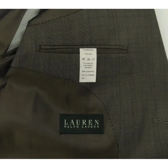 Description: NWOT Lauren Ralph Lauren LRL 100% Wool Windowpane 2 Button Blazer Sport Coat Jacket -Two button closure-Two front flap pockets-Left chest pocket-Single vented back-Four button cuffs-Notch collarSize (Check Measurements): Mens 48 RColor: Light brownFabric: 100% woolCondition: New Without TagsItem#: 65856Measurements are in inchesArmpit to armpit: 24 1/4Back bottom of the collar to the hem: 31 1/2"Shoulder to shoulder: 20 1/2"Shoulder seam to end of cuff: 23 3/4"BUYING VINTAGE We do our best to thoroughly inspect all items for any visible imperfections i.e., rips, repairs, holes, stains, etc. and note as such.·Please note vintage sizes are not always comparable to today's sizing. Please refer to the measurements in the description for a more accurate depiction of the true size. If an issue should arrive, please contact us prior to leaving a negative as we strive for providing excellent customer service.Please compare your measurements to the measurements provided in the listing description to ensure a proper fit.