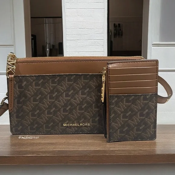 Bag:• Small sized bag; 9-1/4"W × 5"H x 2-1/2"D (width is measured across the bottom of handbag); 1.60 lbs. approx. weight• Silhouette is based off 5'9" model• 22-1/2"L adjustable strap• Zippered closure• Gold-tone signature hardware & front exterior slip pocekt• 3 interior card slots• 1-year manufacturer's limited warranty• PVC, polyester, cotton; lining: polyester; trim: polyurethane, cotton, polyesterCardholder:• 5"W × 3H x 1/4"D• Hardware tone varies by color, 5 exterior front card slots, zip pocket & slip pocket• 1-year manufacturer's limited warranty• PVC, polyester, cotton; lining: polyester; trim: polyurethane, cotton, polyesterBrand new and 100% Authentic Just a reminder,takes 20%, so please consider that when sending offers. *Only REASONABLE offers will be considered*Any offers that are more than 20% off the already reduced, listed price will not be considered. Thanks!Please look through all pics and ask as many questions as needed prior to purchase. *No Returns/Refunds AcceptedAlso, check out my closet for weekly promos and extra discounts!