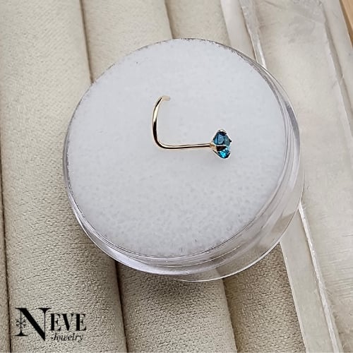 14kt Yellow Gold Nose Screw, 0.6mm (22g) with Prong set 3mm round Aquamarine Cubic Zirconia (CZ) Stone