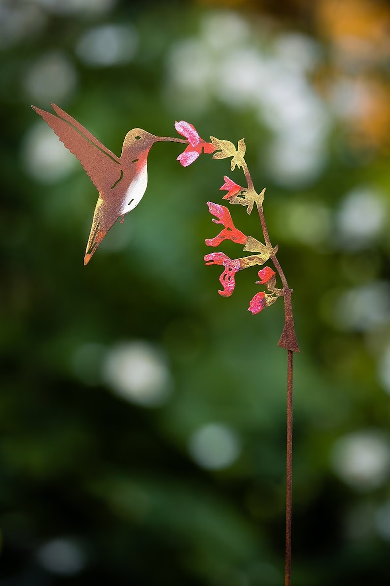 Cut from 16-gauge recycled steel and securely welded to a metal garden stake, this little bird has been pre-treated to give it an authentic rusted surface.