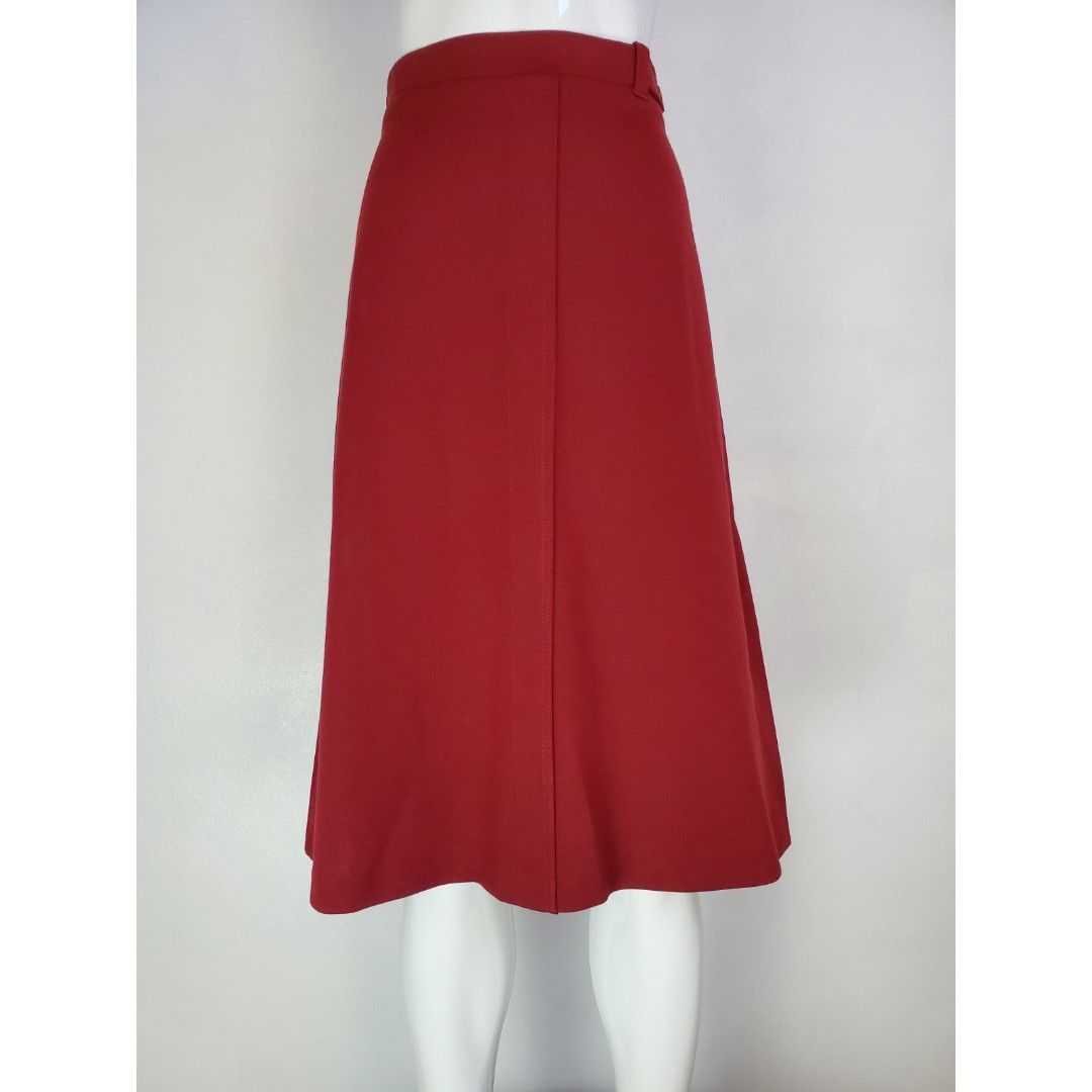 NWT deadstock vintage late 70's Alfred Dunner maroon A-line knee-length skirt. High-waisted with partially elastic waistband. No pockets or lining.