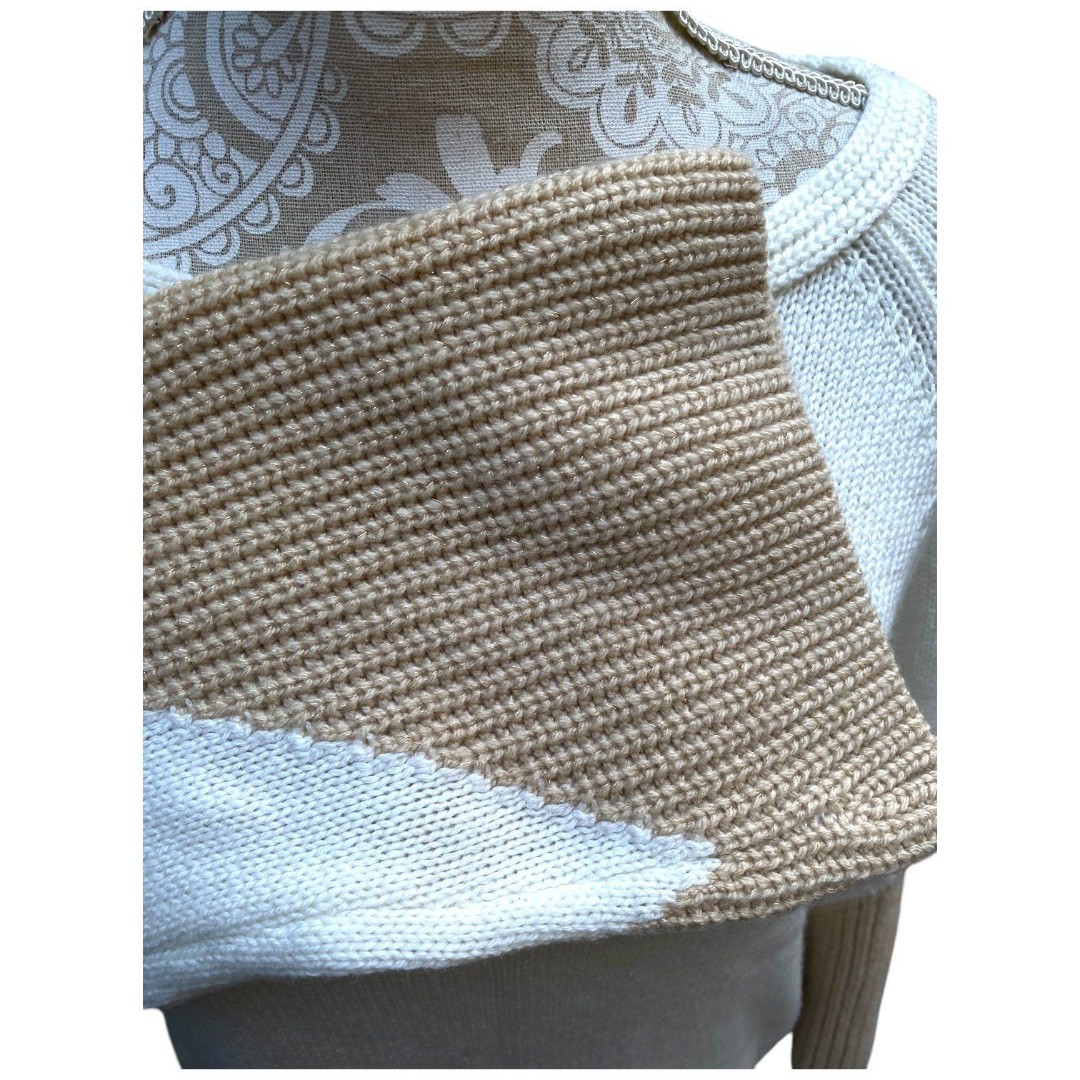 Chicos 1 US M Bateau Sweater Stitch Bell White Gold Sparkle Sleeve Beach