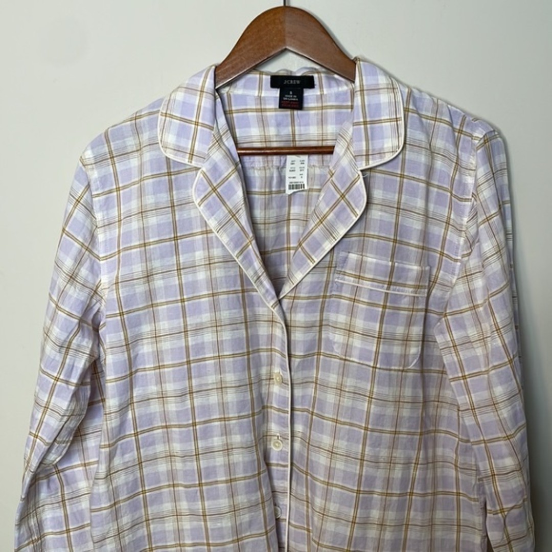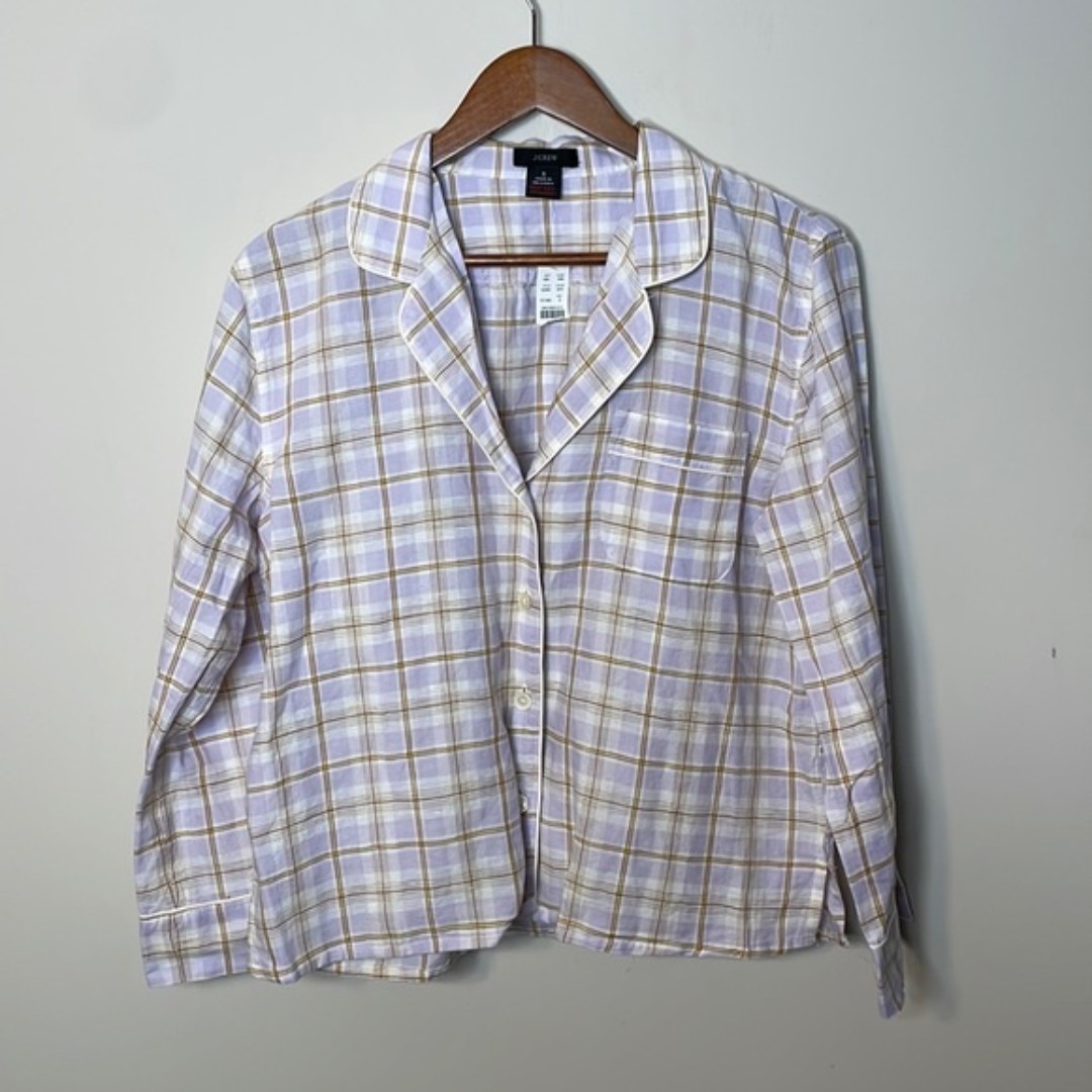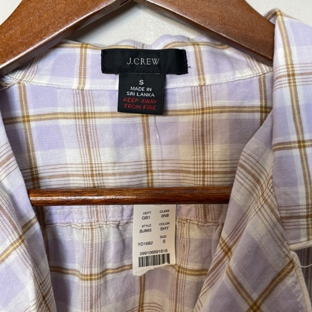J. CREW Purple Brown Plaid Linen Blend Comfy Pajama Shirt