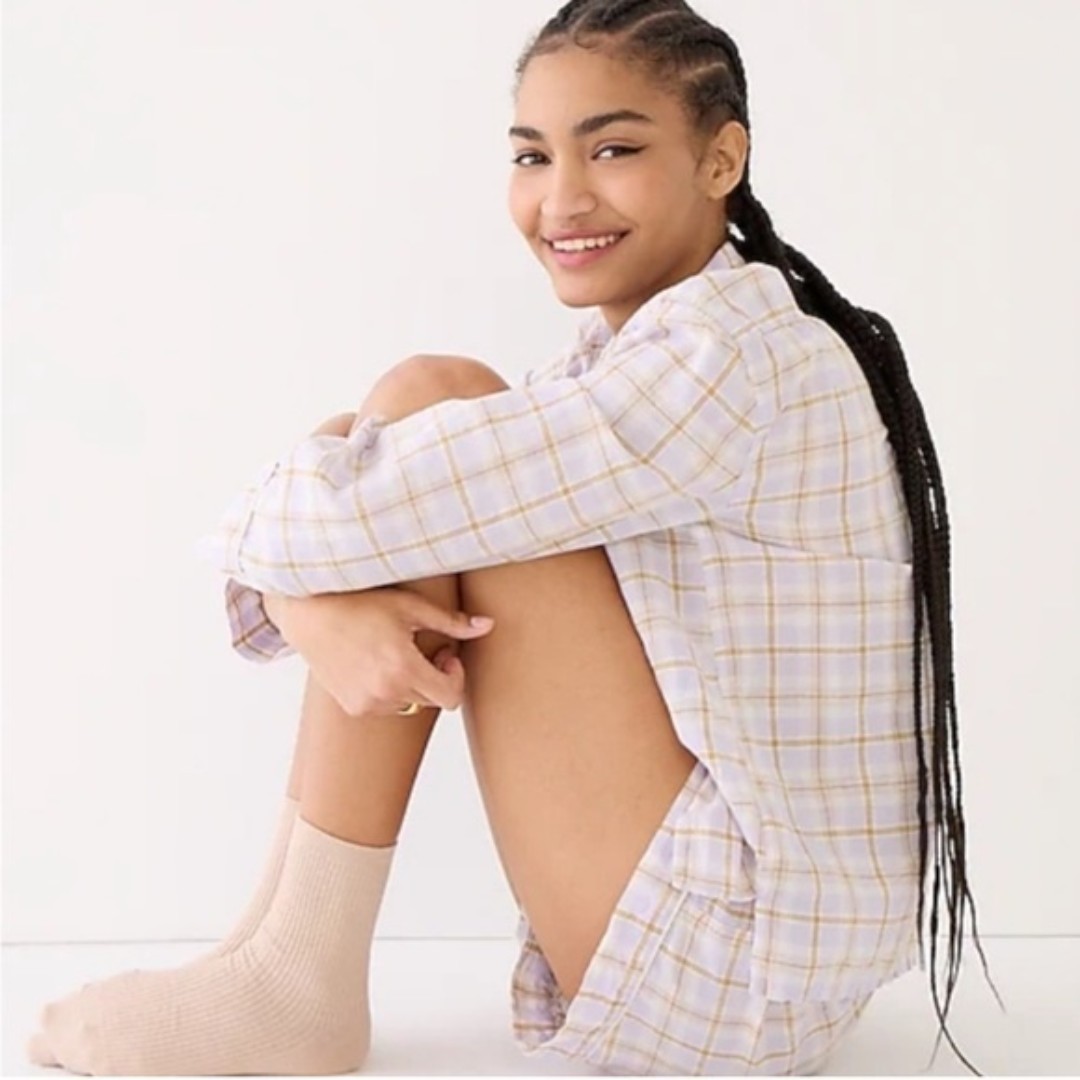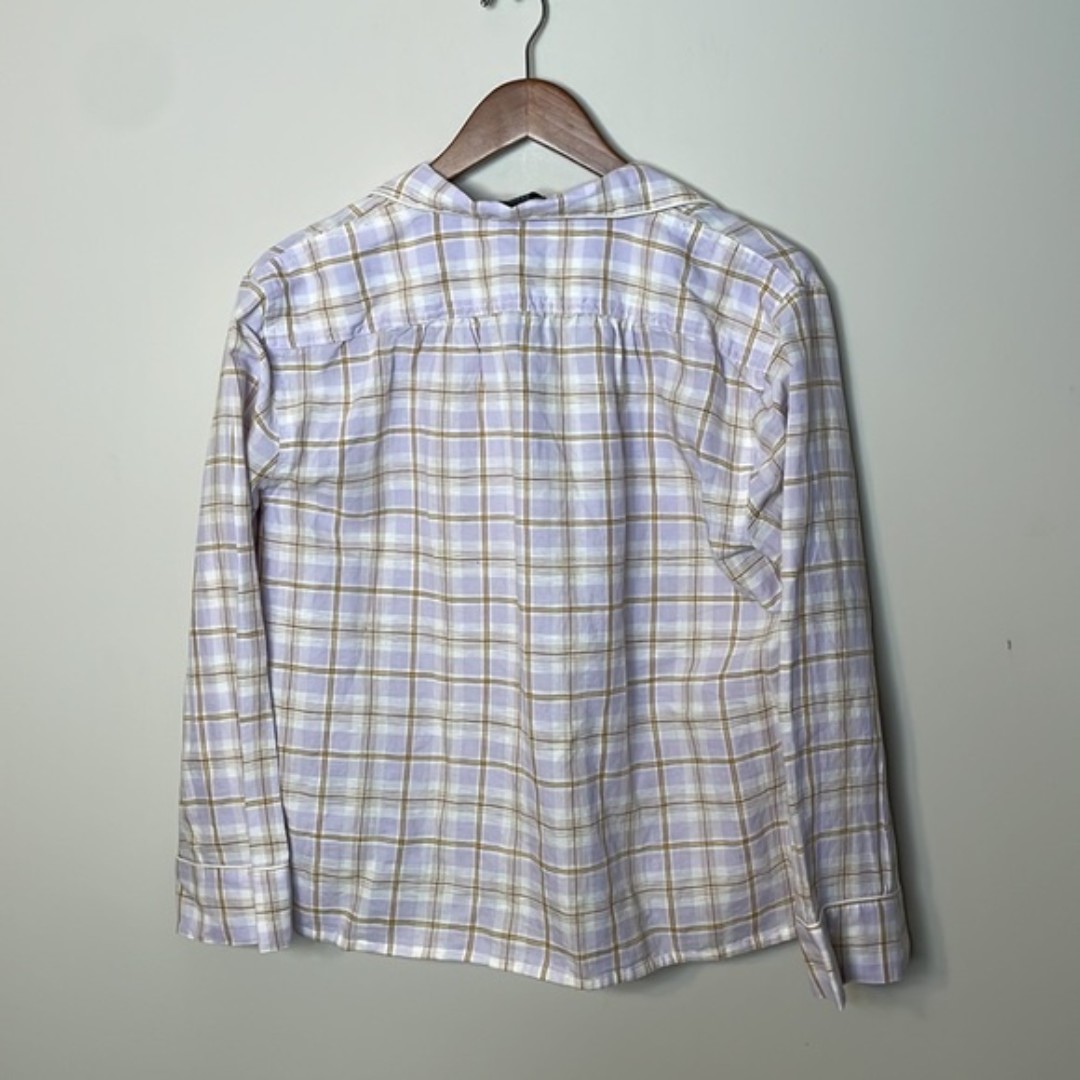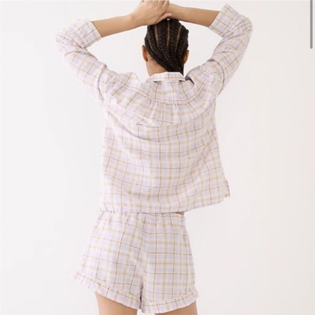 J. CREW Purple Brown Plaid Linen Blend Comfy Pajama Shirt