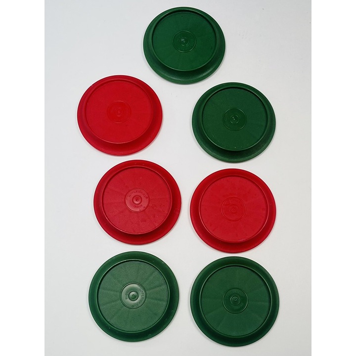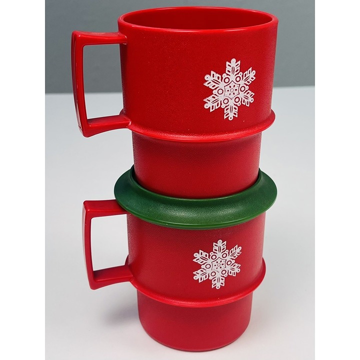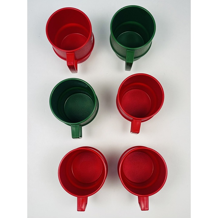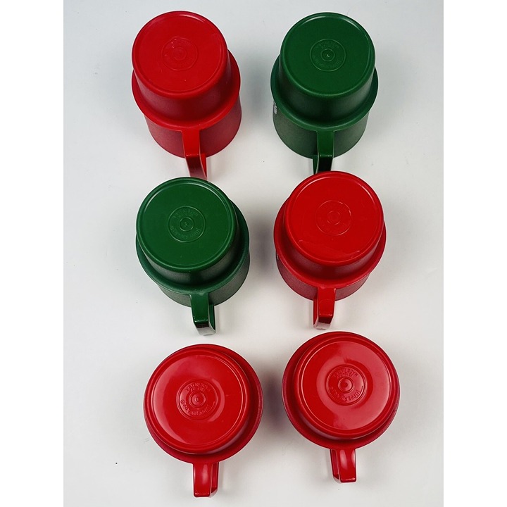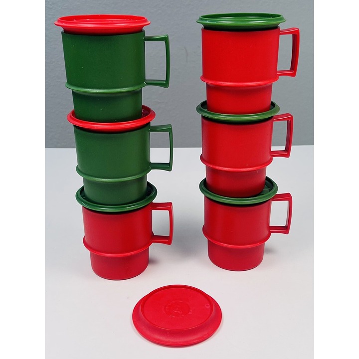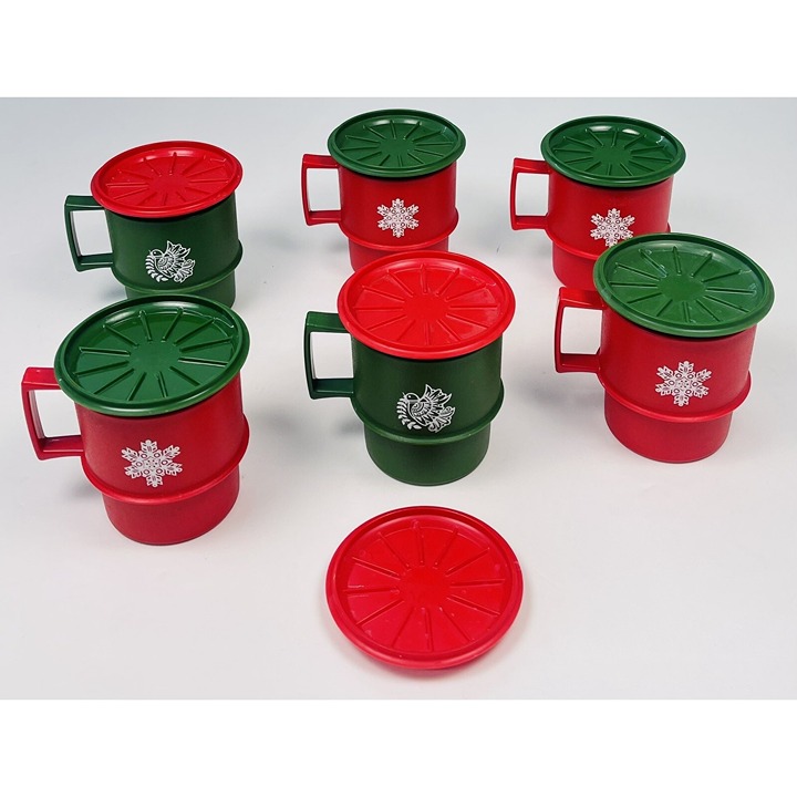 VTG 13pc Lot TUPPERWARE Red Green Christmas MUGS w/ Lids/Coasters Stackable EUC