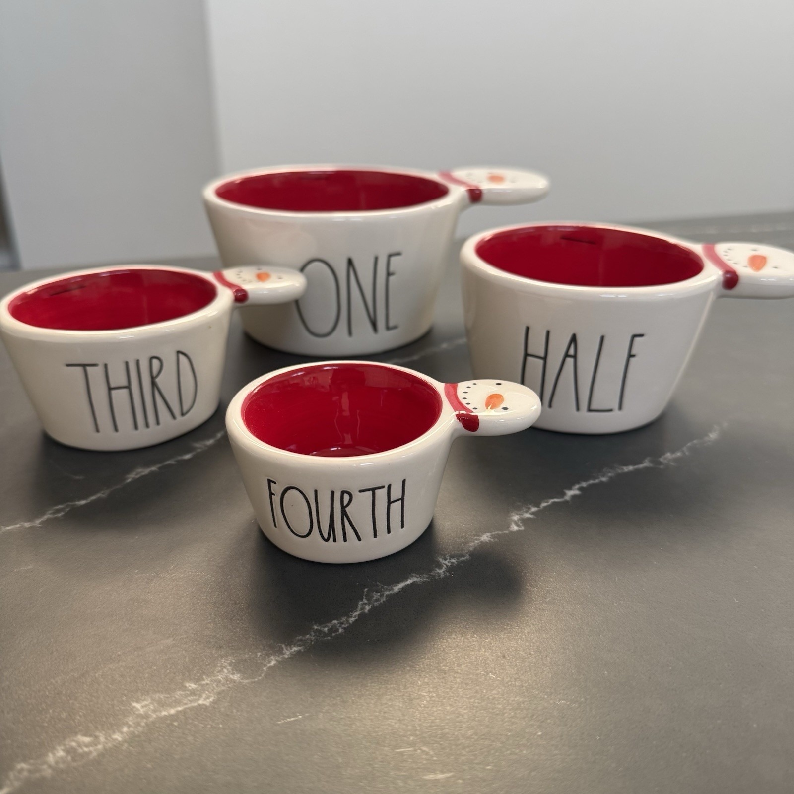 The Rae Dunn Artisan Collection Magenta Snowman Measuring Cups are a festive and functional addition to any kitchen, especially during the holiday season. Made of ceramic and featuring a white color with a holiday-themed design, this set includes 4 measuring cups with a capacity of 4 cups each. The dishwasher-safe cups are adorned with a charming snowman handle, making them both practical and decorative. Perfect for Christmas baking or cooking, these measuring cups are a collectible item that will add a touch of holiday cheer to your kitchen tools and gadgets collection.