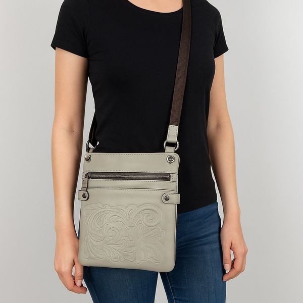 Authentic Patricia Nash design with embossed floral tooling in gray