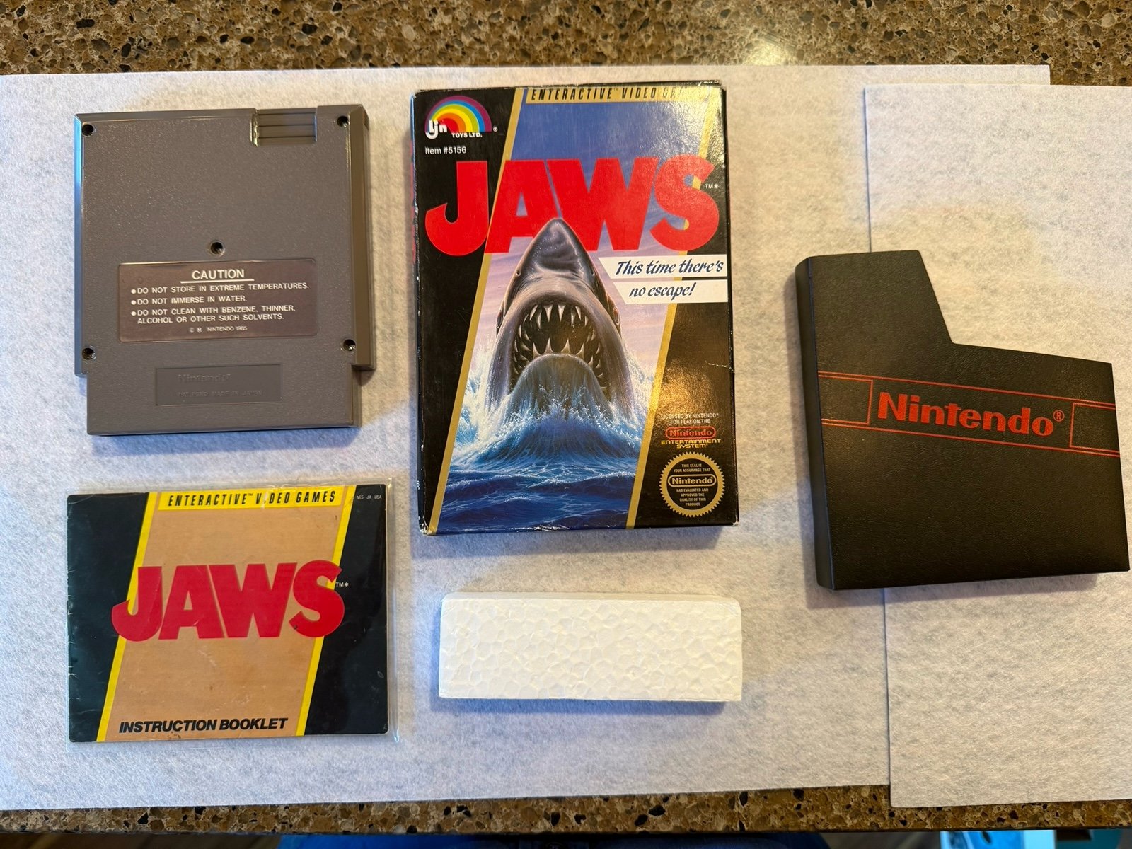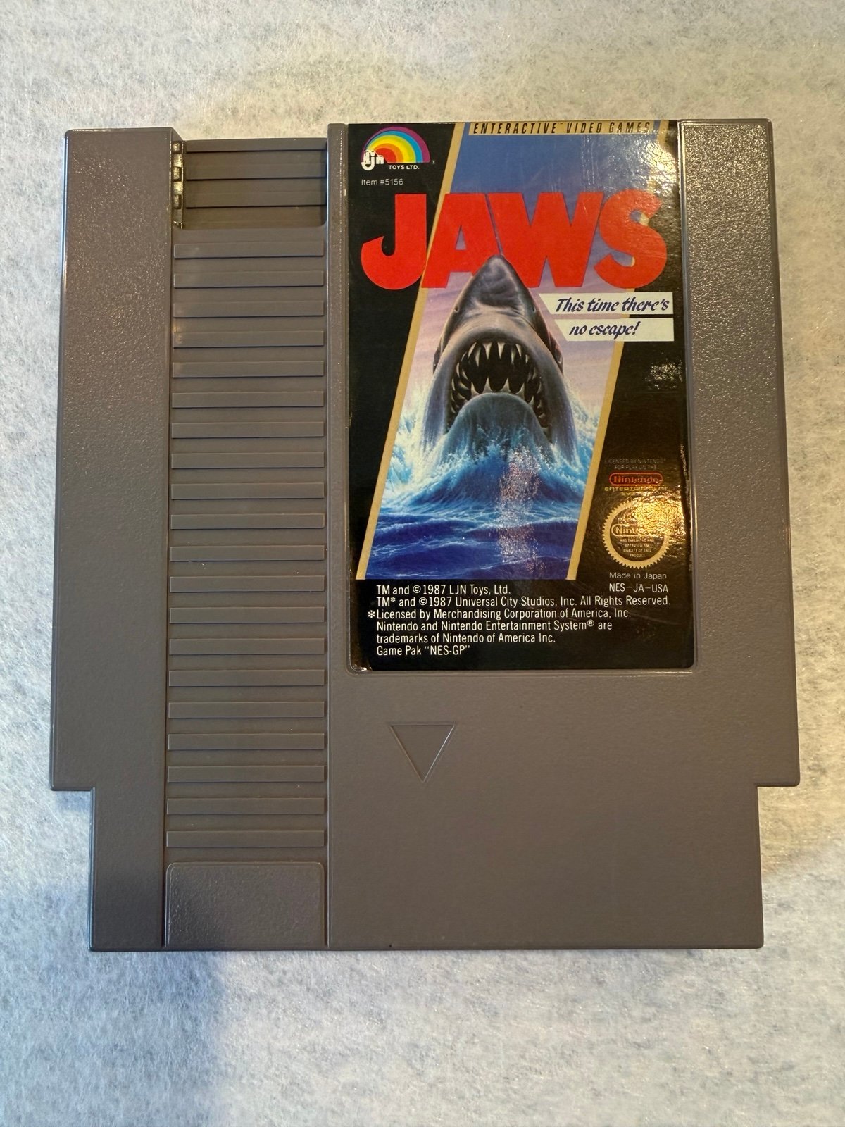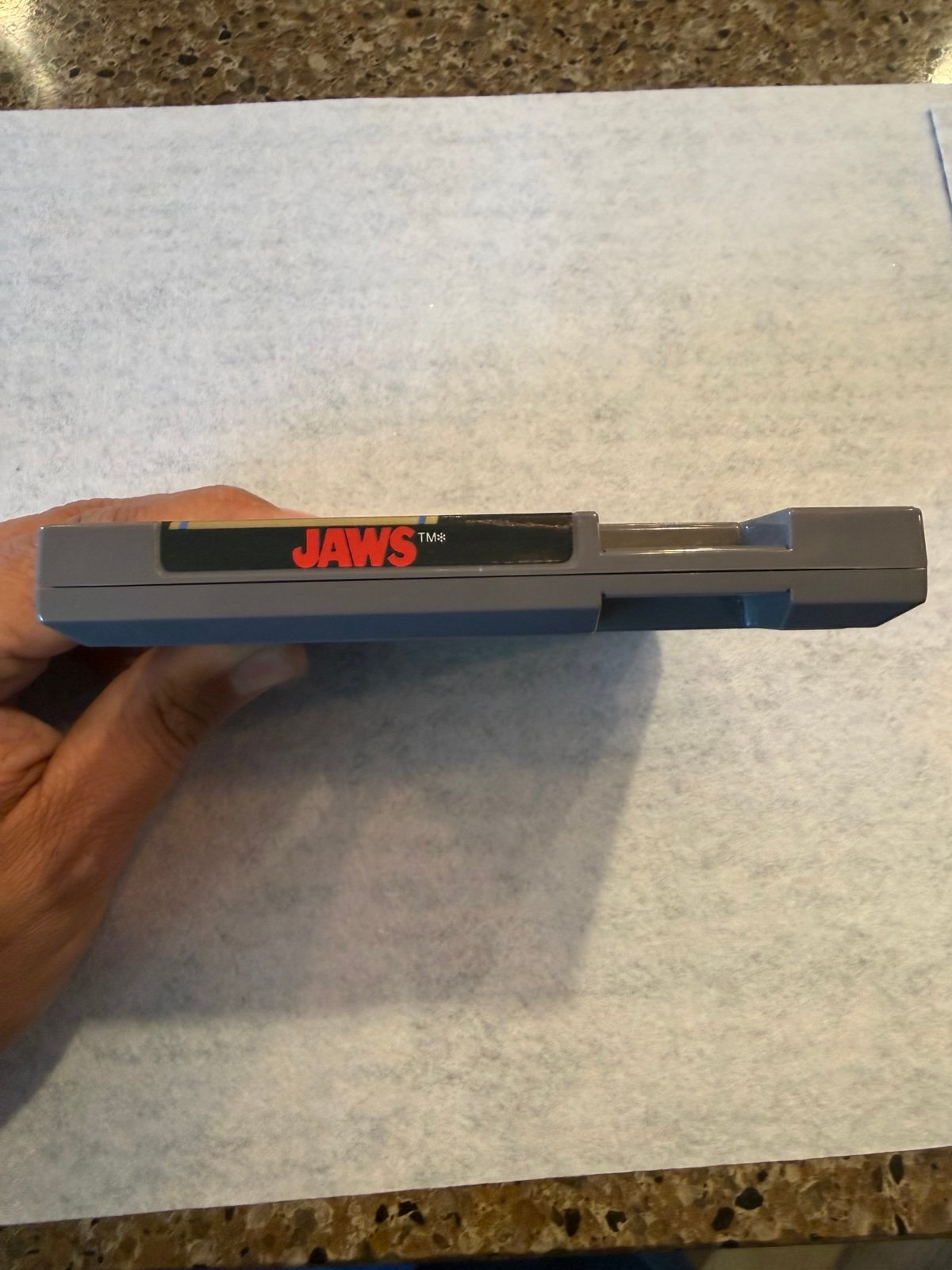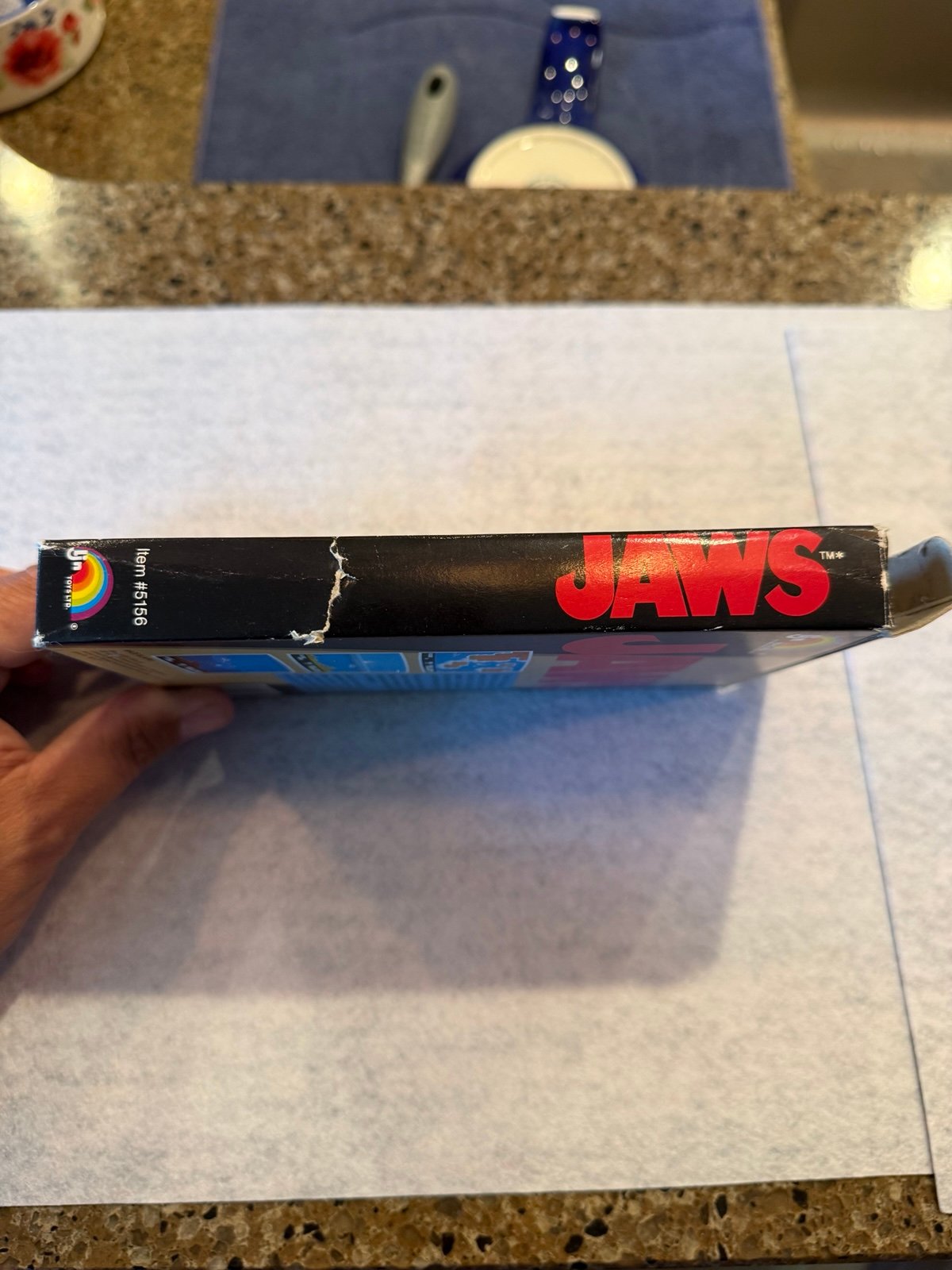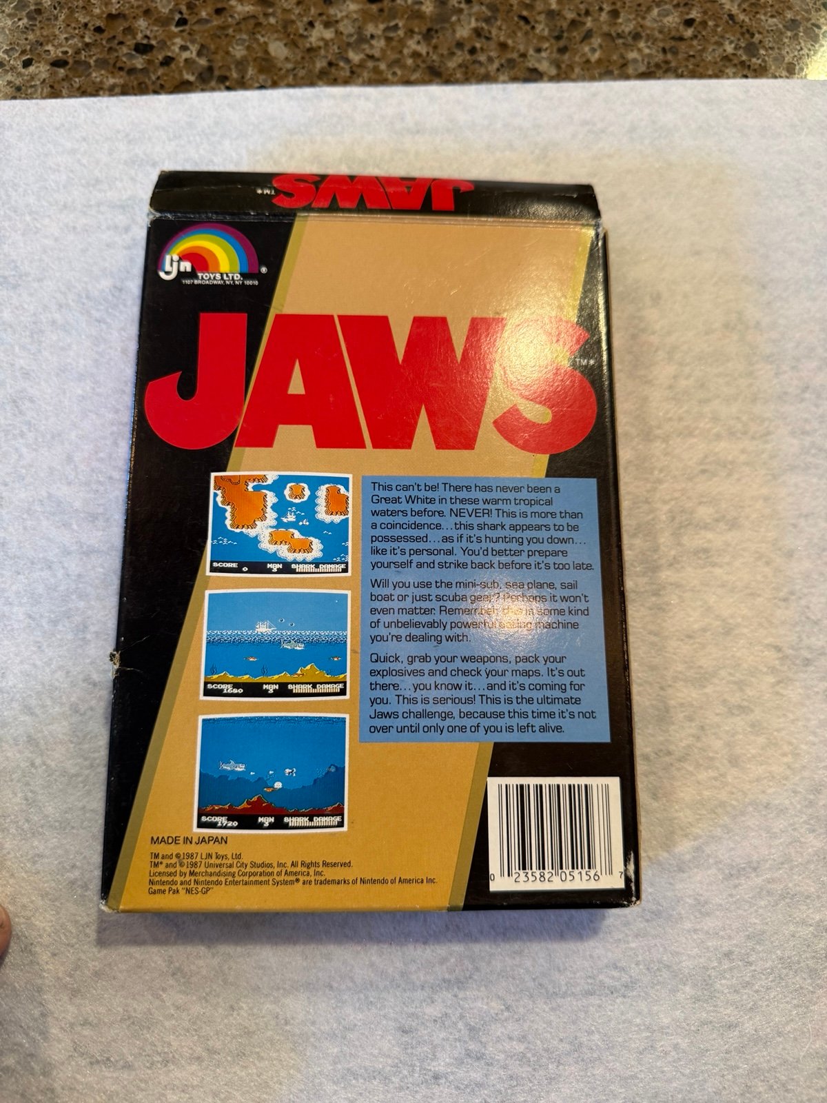 The product is an ultra rare complete in box copy of the NES game "Jaws” 5 screw. released in 1987 by LJN. This action and adventure game, with an E rating, is for the NTSC-U/C platform and includes the original manual. Made in Japan, this sought-after collectible is a must-have for any avid gamer or collector of vintage gaming memorabilia. Working and tested from my collection.