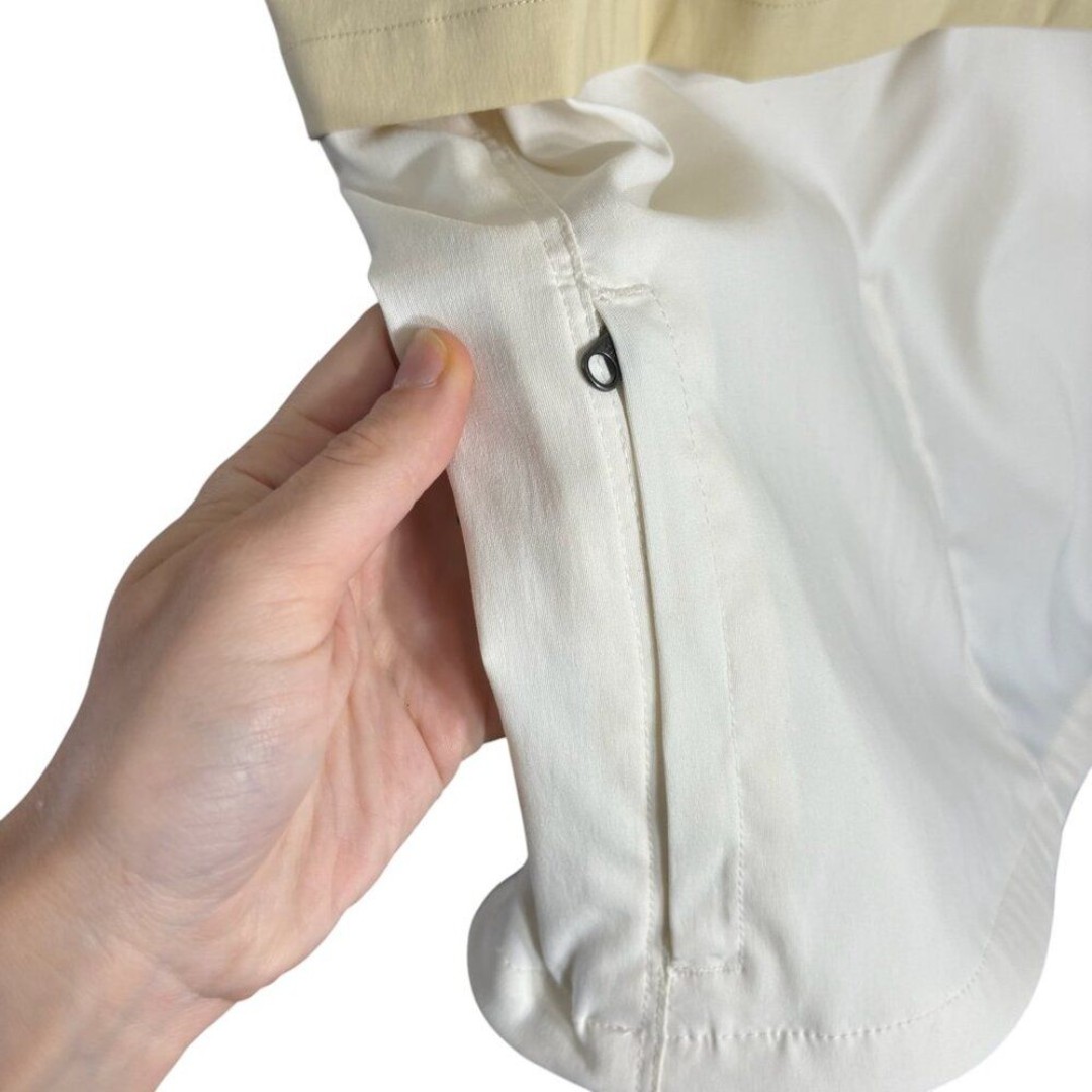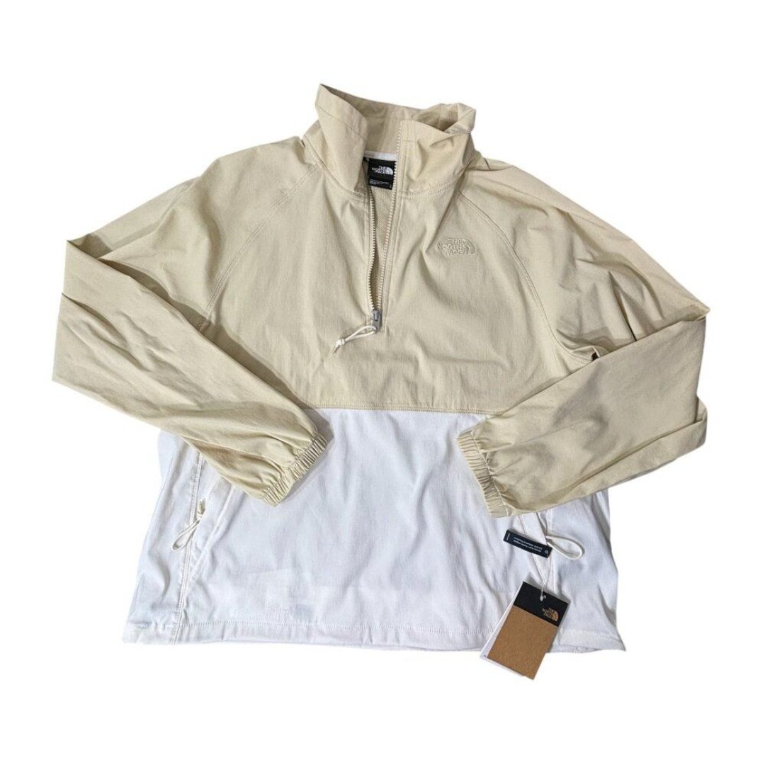 The North Face Windbreaker Anorak Jacket Gravel Gardenwhite Size Large NWT. Jacket is new with tags, zipper front pockets and a half zip. Collared top, no hood. Baggy fit.