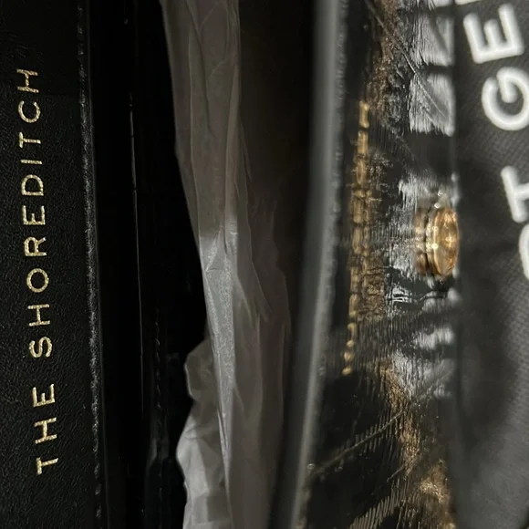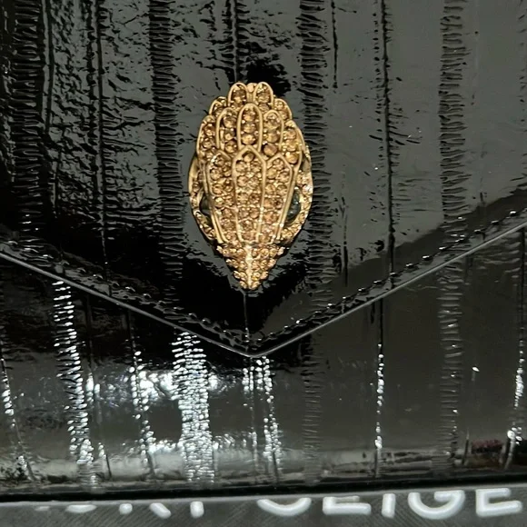 Beautiful kurt geiger patent black bag. Could be used multiple ways. Bag, shoulder bag and clutch. New with tags. Comes with storage bag. Gold chain. Hard to find. Elegant bag!!