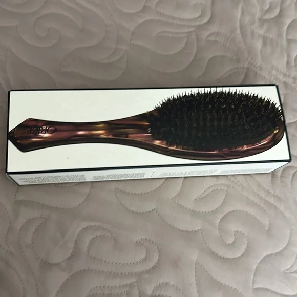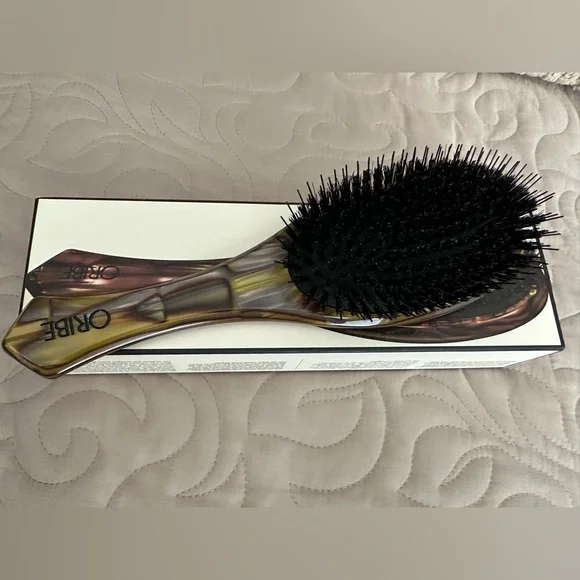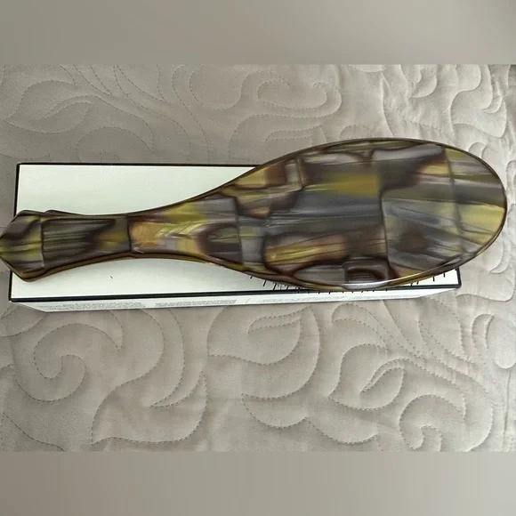 Our Flat Brush is made with custom-designed Italian resin and combines artisanal design with an ergonomic handle for perfect grip and balanced weight. This brush features a mix of boar bristles and rounded nylon pins with a 97% natural rubber cushion to delicately stimulate the scalp and polish hair for an ultra-sleek, shiny finish.Features boar bristles & rounded nylon pinsVariation in bristle height ensures brush perfectly grips hairMade of custom-designed Italian cellulose acetate resinAnti-staticHandle finished by handMade in ItalyNew in box