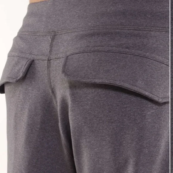 Just for the record, not everybody was Kung Fu fighting. Some of us were doing Kung Fu yoga.Why we made thisIt doesn't matter how good we are at Kung Fu, it's impossible to do a really good high kick in a pair of jeans. We developed these pants because we wanted to be able to move freely through our yoga practice.Key featurestie the stretch drawcord in the waistband for a proper fitathletic fit for a muscular posterior (that's hockey butt in layman's terms)two hip pockets and two rear pockets for your cards and keyschafe-resistant flat seams won't rub you the wrong waypreshrunk so you don't end up kicking your dryerTech specsdesigned for: yoga, gymfabric(s): luon®, meshproperties: four-way stretch, moisture wicking, preshrunk, chafe resistant, breathableinseam: 34.5”Waistline laying flat ( unstreched) 16.5”In a great preowned condition The only flaw one of the cap on the string got damaged,but since it’s inside no one will see it.Please look at the last imageComes from a smoke/pet free house*11