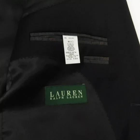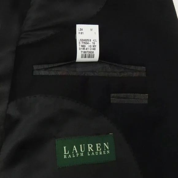 Description: NWOT Lauren Ralph Lauren LRL 100% Wool 2 Button Blazer Sport Coat Jacket -Two button closure-Two front flap pockets-Left chest pocket-Single vented back-Four button cuffs-Notch collar-Union madeSize (Check Measurements): Mens 42 LColor: BlackFabric: 100% woolCondition: New Without TagsItem#: 67131Measurements are in inchesArmpit to armpit: 22 3/4"Back bottom of the collar to the hem: 32 1/2"Shoulder to shoulder: 19 3/4"Shoulder seam to end of cuff: 26 1/2"BUYING VINTAGE·We do our best to thoroughly inspect all items for any visible imperfections i.e., rips, repairs, holes, stains, etc. and note as such.·Please note vintage sizes are not always comparable to today's sizing. Please refer to the measurements in the description for a more accurate depiction of the true size. If an issue should arrive, please contact us prior to leaving a negative as we strive for providing excellent customer service.Please compare your measurements to the measurements provided in the listing description to ensure a proper fit. 64927