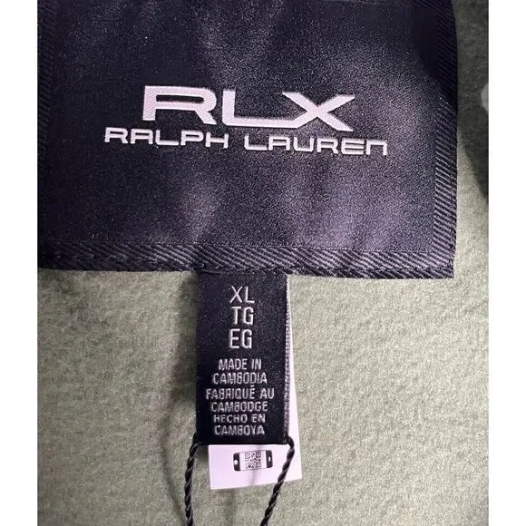 This Polo Ralph Lauren RLX Golf Fleece Vest is designed for men in size XL. The olive green vest features a 1/2 zip closure, lightweight fleece fabric, stand-up collar, and pockets. It is suitable for various occasions such as travel, parties, casual outings, and workwear. The vest is part of the Ralph Lauren RLX product line and is ideal for outdoor activities like golfing.
