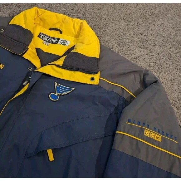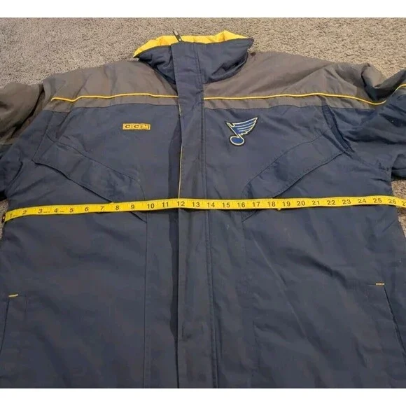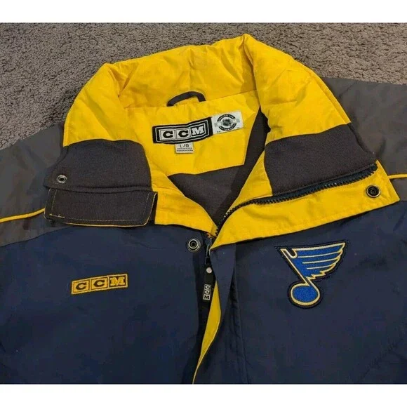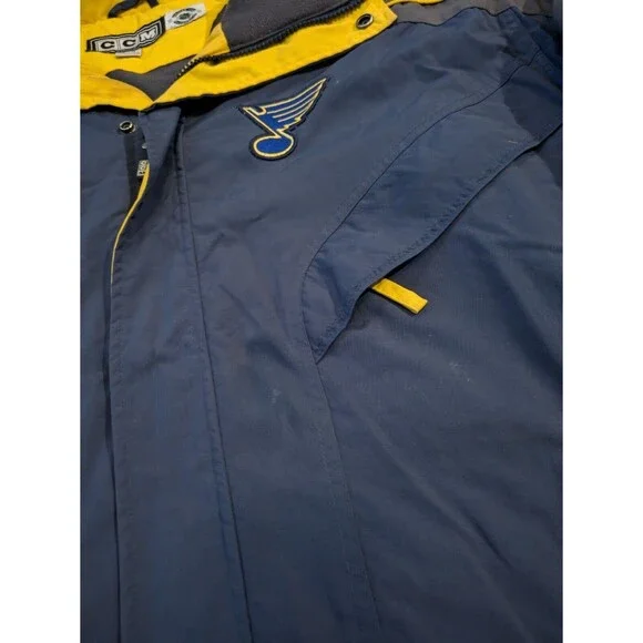 Vintage CCM Center Ice Authentic St Louis Blues Hockey Winter JacketMen's LargeMeasurements are Shown in Photos.Pre-Owned Jacket. No Holes, No Pulls & No Odors. Jacket has a couple small faint spots on it. A little Dirty inside the Collar as Pictured. Just Needs a little TLC Cleaning. Please See all Photos.Ships Fast with Same Day as Payment ShippingAny Questions Please Ask Thank YouPlease Check out our Store for More Great Items! Thank YouBundle Discounts Available
