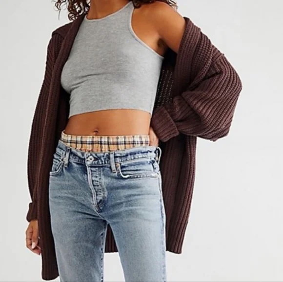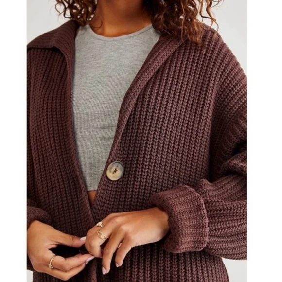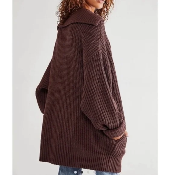 FREE PEOPLESwim Too Deep Cardigan Pockets Slouchy Size M brown
