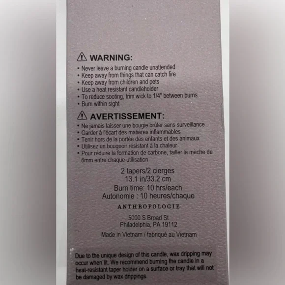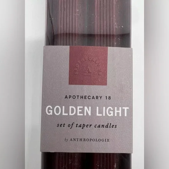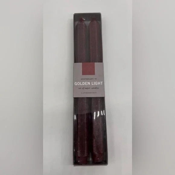 NWT NIB New with Tags in Original Box Anthropologie Apothecary 18 Golden Light Taper Candles in Wine Set of 2 with Beautiful Tinsel Fuzzy Effect Rare HTFEnhance your home decor with these elegant red taper candles. Perfect for creating a warm and inviting atmosphere.This listing is for the box set of 2 candles only - does not include candle holdersSold out at Anthropologie.