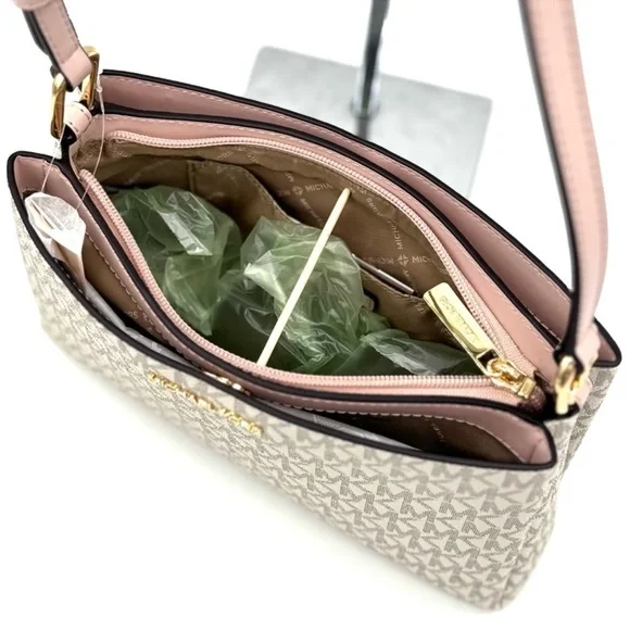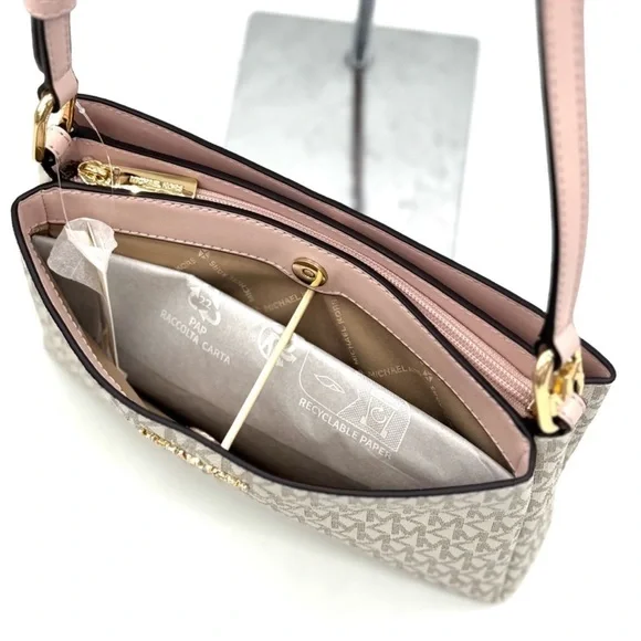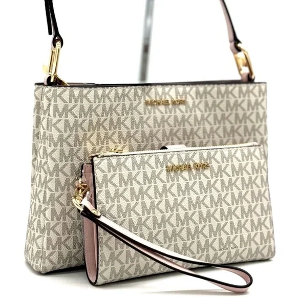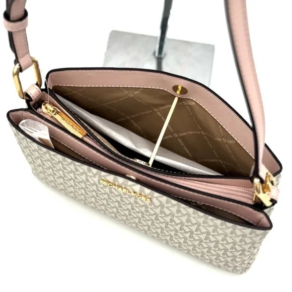 Brand new with tag 100% AuthenticFAST SHIPPINGDon't be afraid to make an offerCrossbody bagColor: Powder Blush Multi• Logo-print canvas• 84.9% coated canvas/9.6% polyester/1% polyurethane• Trim: 100% polyurethane• Gold-tone hardware• 9.75"W X 7"H X 2.25"D• Handle drop: 5.72"• Adjustable strap: 21"-24"• Interior details: back zip pocket, front slip pocket• Lining: 100% polyester• Zip fastening• Dust bag not included• Imported• Style # 35H1G9TC8BNWT Michael Kors Jet Set travel double zip wristlet, wallet, clutchPVC and Saffiano leatherPowder Blush Multi color with gold hardware 6 credit card holders1 ID holder2 slip compartments2 zip pockets a phone holder slot and a large bill section accessible from the side7.25'"' x 4.25" x 1"Comes with a detachable wrist strap