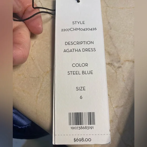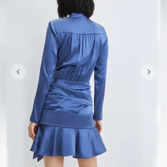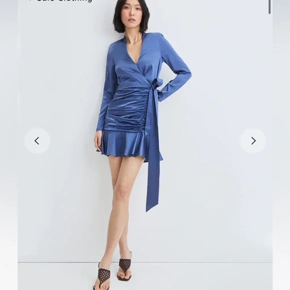 Brand new with tags, hanger and plasticbagSaw on my favourite influencer and loved it but it’s just a tad too short for me.Reasonable offers entertained. 🙏DESCRIPTIONIn our glossy-stretch silk, the Agatha dress is your answer to date-night chic. A wrap-style V-neck, side waist tie, and allover ruching give this piece its ultra-flattering shape. Wear it withsimple stiletto sandals and polished gold jewelry.DETAILS & FIT92% Silk, 8% ElastaneSleeve length 31 1/2" | Length 36"Our model is 5'10" and is wearing a size 4LinedProfessional dry-clean only• Style #2208CHM0420426