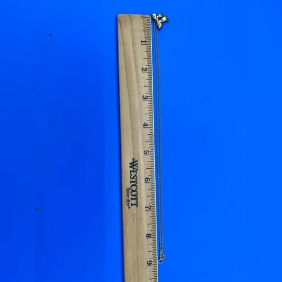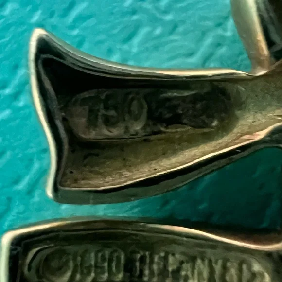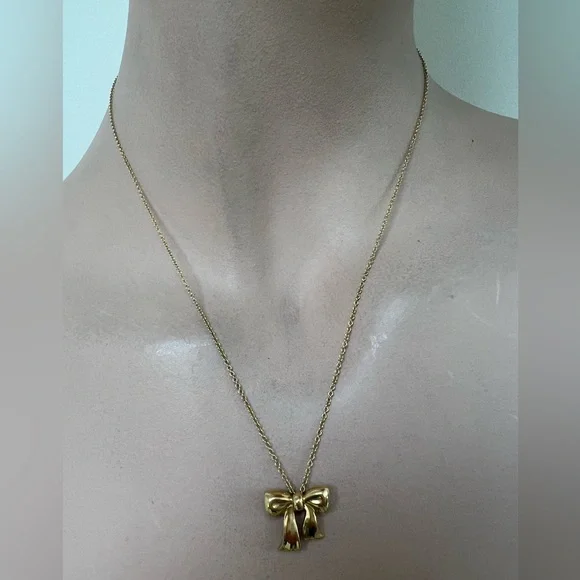 This vintage authentic necklace is rare to find. It is 100% authentic. The pendent is engraved with Tiffany&Co 1990. And 750 real 18k gold as wellAs the chain. A very small know that the end of the chain which I don’t have the time to unknot it . It comes with Tiffany&Co pouch , box and little blue stand.